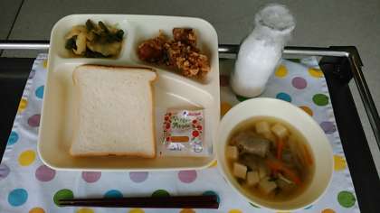 「鶏肉のピリからあげ」は好評でした。献立コンクールの献立が通常の献立の仲間入りしました。これからも毎年登場します。