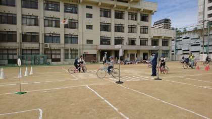 4時間目には、運動場で自転車を乗る練習をしました。安全に乗るためには、たくさん確認しなくては、いけないことに気が付き、安全に乗ることの難しさも知ることができました。