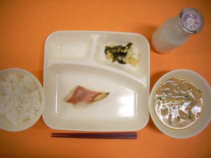 赤魚のゆずの香焼き・みそ汁・わかたけ煮・ごはん・牛乳