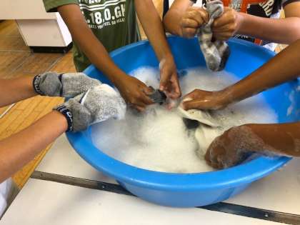 5月29、30日に家庭科で洗濯実習を行いました。手洗いをしたことがない子どもが多く、「こんなに泡がたつんだ!」「もみ洗いするときれいになった!」などの驚きの声が上がっていました。中には、「実習後に家でも選択してみました!」といううれしい感想もありました。ぜひご家庭でも洗濯実習について聞いてみてください。