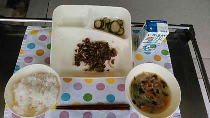 今日の献立は、中国の料理です。野菜が約120グラム使用しています。どの献立も歯ごたえがよく、食べごたえがありました。