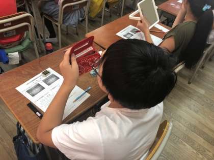 噛むことと唾液の関係について知ったり、実際に歯肉炎の写真と自分の歯肉とを見比べて自分の歯茎をチェックしたりしながら、歯の生活習慣について考えました。