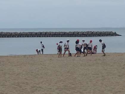 海辺で活動している様子です。砂浜を歩いているはずなのですが、なぜか全身ずぶ濡れの子どもがいるそうです。