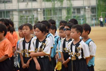 最近1、2か月間は「強さ:ボールの奪い合いに競り勝つこと、当たり負けしないこと」をテーマに練習に取り組んできました。その成果が少しずつあらわれ、先の大阪市の副市長杯(5年生以下大会)では32チーム中3位の好成績を収めることができました。