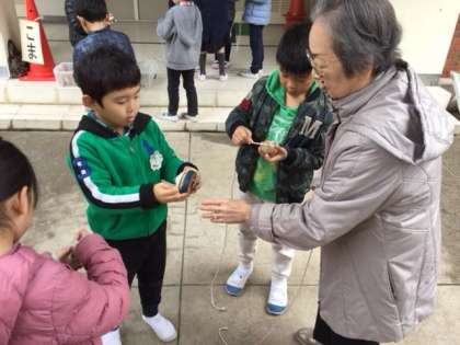 1年生では、12日に昔遊びの会をしました。