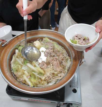 かも鍋をみんなでおいしくいただきました。この後はみんなが楽しみにしているキャンプファイヤーです。