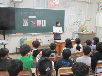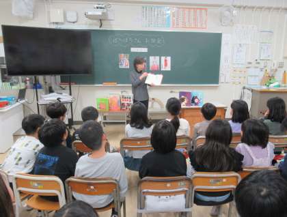 10月27日〜11月9日は読書週間です。それに合わせて、『天王寺おはなし「ぼちぼち」』さんに来ていただいて全学年で「お話会」を実施しました。教室にろうそくがともるとお話会がはじまります。子どもたちは学年に合わせて選んでいただいた本の読み聞かせを熱心に聞いていました。