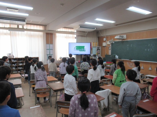 12月23日、2学期の終業式を行いました。校長先生から、2学期の振り返りや、冬至など、季節に関するお話がありました。また、生活指導のお話として「お金の使い方」等のお話がありました。3学期始業式は1月9日(金)です。元気に登校してくるのを待っています。
