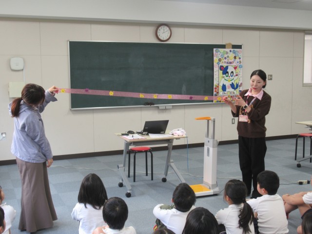 測定を始める前に、養護教諭から健康に関するお話がありました。
