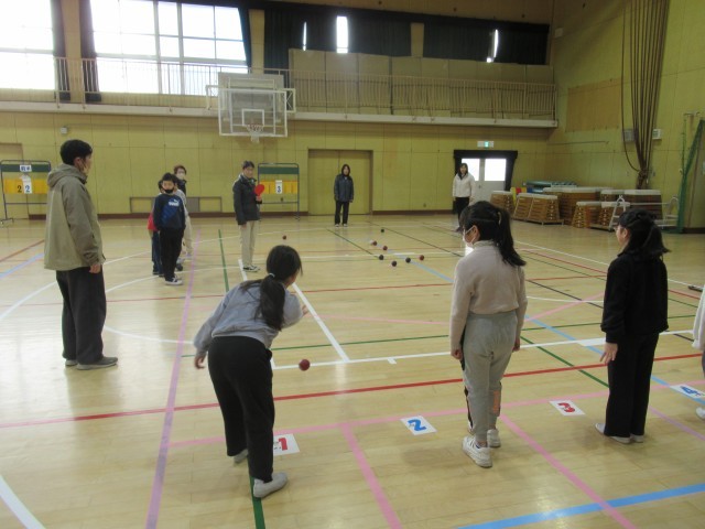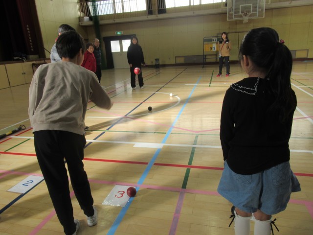 今年も3年生が五条地域活動協議会の方に「ボッチャ」を教えていただきました。自分の投げたボールがジャックボール(目標玉)に近づいたり、相手のボールにあたって、相手ボールが目標玉から遠ざかると大歓声が上がっていました。五条地域活動協議会の皆様、寒い中、子どもたちに貴重な体験を提供していただき本当にありがとうございました。