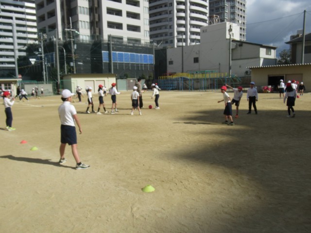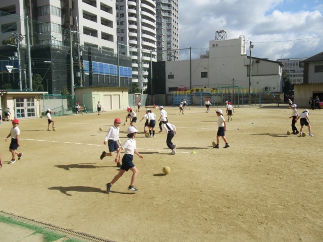 体育科の学習の様子です。3年生はボールけり運動に取り組んでいます。この日は、相手に取られないようにドリブルをしたり、パスの練習をしたりしました。穏やかな日差しの中、元気いっぱいに活動しています。ボールに慣れてきたら、今後ゲーム形式の活動も行っていく予定です。
