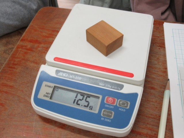 理科の学習の様子です。「ものの重さ」の単元の学習を進める中で、この日は「同じ体積でも、ものの種類が違うと重さは違うのだろうか」という学習問題に対して、実験をしました。同体積の鉄・アルミニウム・ゴム・木・プラスチックをそれぞれ電子てんびんで量りました。グループで協力して実験を進めることができました。