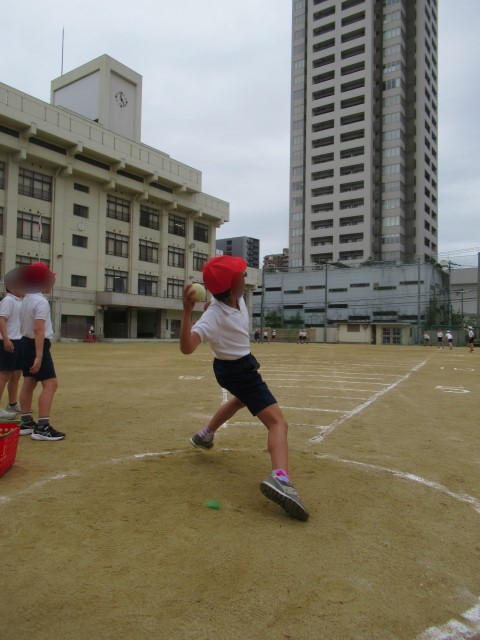 体育科の学習の様子です。新体力テストの1つとしてソフトボール投げを実施しています。今後、他の測定も実施していく予定です。