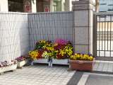 校門のプランターに美しい花が咲いています。子どもたちが毎朝楽しく登校できるよう...