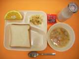 マカロニグラタン・スープ・甘夏かん・食パン・いちごジャム・牛乳