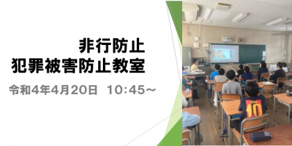 4月20日の3時間目、6年生を対象に「非行防止・犯罪被害防止教室」を実施しまし...