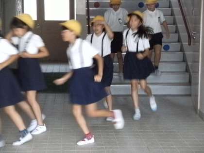 どの学級の児童も、真剣な眼差しで、おしゃべりもなくすばやく避難できました。