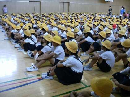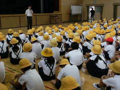 「今日は大阪府全体で避難訓練に取り組んだ日ですから、お家で地震が来たらどうするか、お家の人と話し合うということが宿題ですよ。」と締めくくられました。