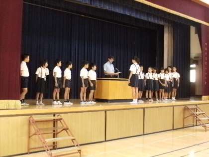 今日の児童朝会は、しっかりお話が聞けていて、マイクを使わずに全員が話を聞くことができたと、校長先生からお褒めの言葉がありました。