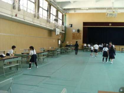シートを丁寧に敷き、安全に気を付けて椅子を運んで会場図通りに設営することができました。