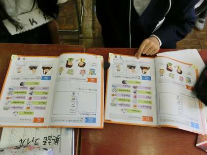 6年生の外国語の授業では、This is ME!で 自己紹介の学習をしています。天王寺中学校から先生も来ていただいたり、C−NETの先生も来ていただいたりと学習の日によって変わっていきます。