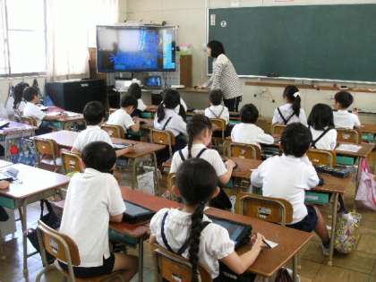 学習の最後には、みんながどんな写真を撮ったのか、どんなところにマーキングをしたのか、大型テレビで確認しました。