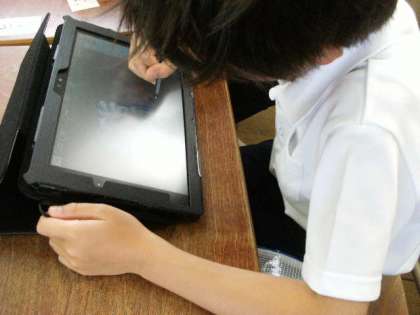 一人ひとりパスワードを入力してログイン。タブレットの約束も確認しました。