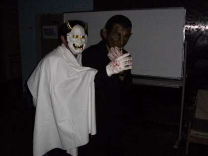子ども達の楽しみ?肝だめしです。先生達や事務の先生もかけつけてくださり、お化け役です。