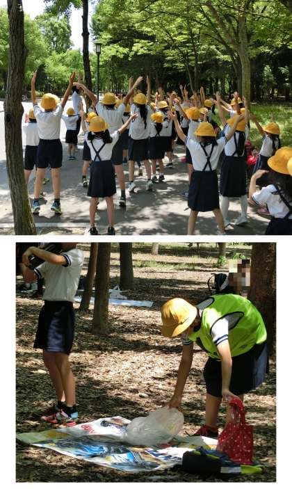 低学年にやさしく声をかけたり、トイレやお茶のみの確認をしたり、ポイントのゲームをやりやすいように手伝ってあげたり、昼食後の片づけを一緒にしてあげたりと、普段の授業や学年行事では見られない頼もしい姿が次々とみられました。また、5年生とも協力し、高学年としてお互いに下の学年の面倒をよくみていました。