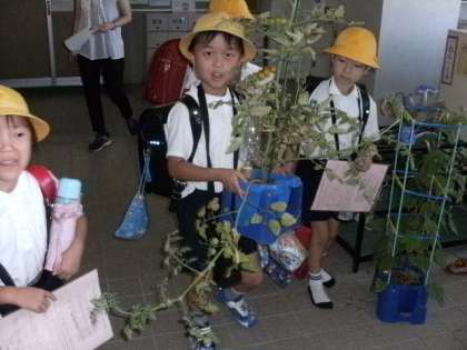 夏休みの間、2年生の子どもたちが一生懸命育てたミニトマトを自宅で世話をしてもらいます。