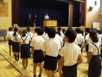今日の児童朝会では、教育実習の先生が今秋から2週間来られるので、校長先生よりその紹介がありました。