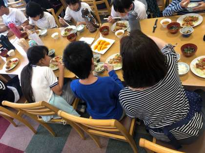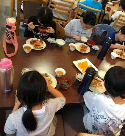 「お腹すいたー」と食堂に集合した子ども達です。
