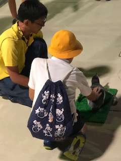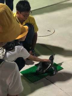 クラスごとにペンギンタッチと餌づけ体験をさせていただいております。
