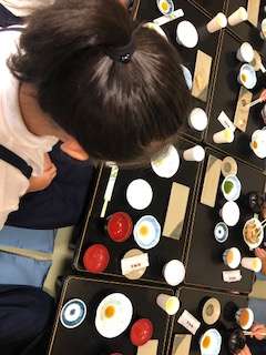 朝食は、焼き鮭やサラダ、おみそ汁、イカそうめん、かまぼこ、のり、たくあんにごはん、お茶、お水をいただきました。ごはんはお代わりしている子もいました。