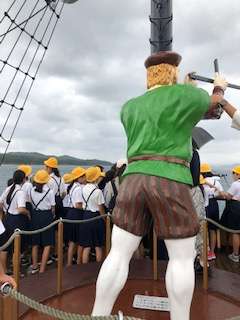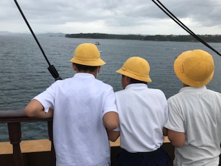 出港直後は雨が強かったのですが、小雨になったため甲板に出て風や波を感じることができました。