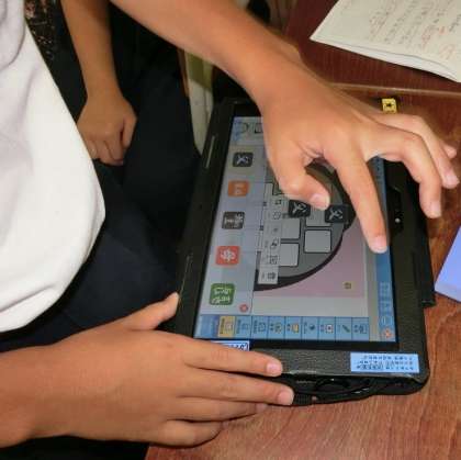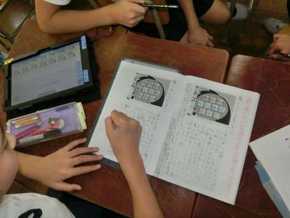 人物の変化について考え、中心人物の心情が大きく変化する場面がどこか考え、ノートにまとめたり、個人や全体でタブレットを使ってみんなで交流したりしています。