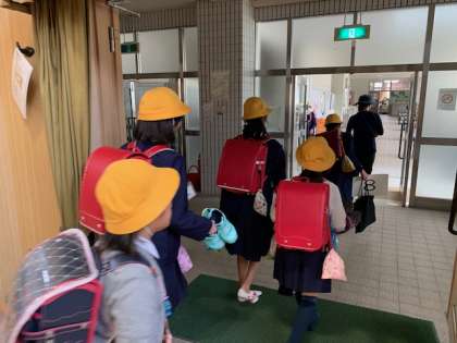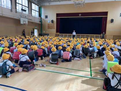 5時間目に防犯訓練、地域子ども会集団下校を行いました。