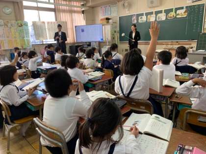 校内の先生のみならず、校外からもたくさんの先生がいらして参観するなか、しっかり集中して学習できました。
