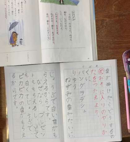 1年生では、国語で「歯がぬけたらどうするの」の学習をしています。