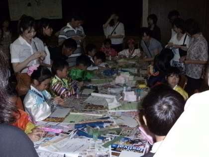 そのあとは、低学年・中学年・高学年・中学生に分かれて、日本の和紙にあたる韓国の漢紙(ハンジ)を使ったクラフトに挑戦しました。