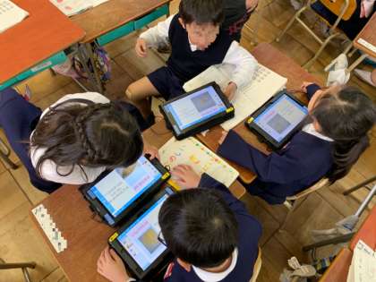 みつけた秋は「秋ノート」に丁寧に記録されています。みつけたたくさんの秋から一番のお気に入りを「キラキラ」と称してタブレットPCを使って発表ノートにまとめ、交流しました。