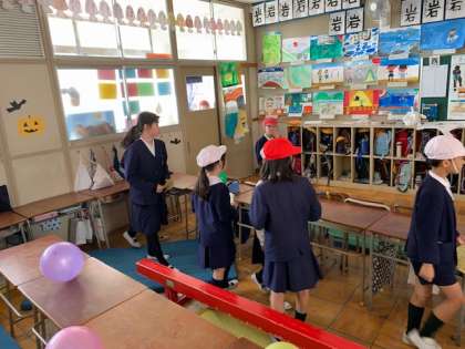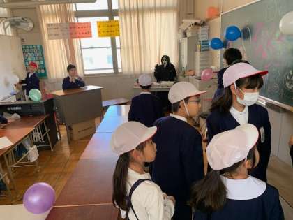 普段の教室が様変わりしていてびっくり。教室の奥をよく見ると…