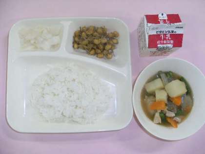 給食では1年に1回登場の冬が旬のかぶを、ゆず風味のタレをかけ、さっぱりと仕上げています。