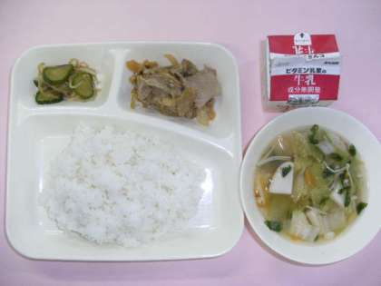 豚肉を使用しています。にんにく、砂糖、赤みそ、こいくちしょうゆで下味をつけ、たまねぎと合わせて焼いています。