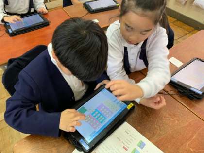 6時間目は2年生でタブレットを使って「なかまになることば」の学習をしました。