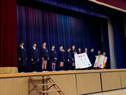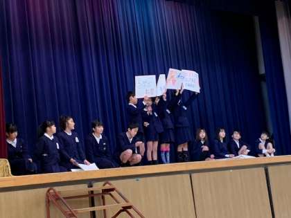 3学期最初の集会は、新聞掲示委員会の発表です。