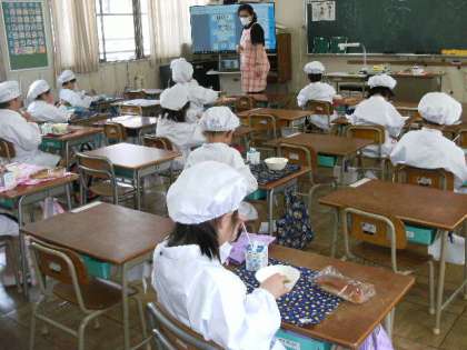 給食が再開されて4日目です。子どもたちも教職員も、新しい給食のスタイルに慣れてきました。