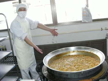 出汁がきいたカレー丼です。低学年の子どものなかには、おいしくてついつい食べ過ぎて、ヨーグルトまでいきつかない、という事態に・・・
