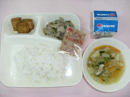 1年に1回だけ7月に登場するにがうりを使った沖縄料理です。卵は使用していません。食べる前に小袋のかつおぶしをかけることで、風味と旨味を添えています。