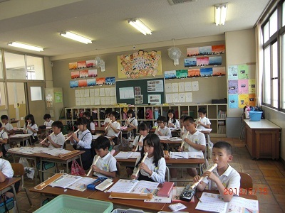 3年生では今、リコーダーの練習に熱中しています。